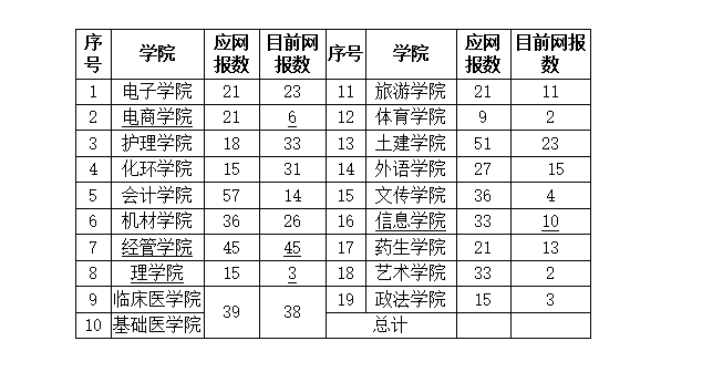 为认真做好我校第三届“互联网+”创新创业大赛组织工作,进一步引起各相关二级学院和部门的高度重视,提高我校教师和学生参加创新创业大赛的积极性和主动性,确保赛事各项工作进展顺利,并取得优异成绩。现将我校截止5月11日前各二级学院参赛报名情况统计并予以通报,详见下表。
