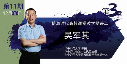 本堂课吴军其老师继续用大量生动有趣的实践典型案例和自己的课堂教学实践经验来与学习者分享信息时代高校课堂教学秘诀,主要内容有: 1.PBL教学模式;2.WebQuest教学模式;3.颠倒课堂。欢迎各位老师收看!