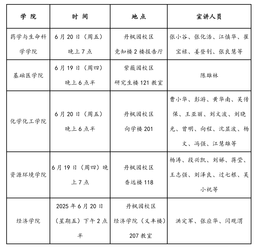 为帮助考生全面了解我校硕士研究生招生及培养情况,我校将举办硕士研究生招生专场线下宣讲会,具体安排如下: