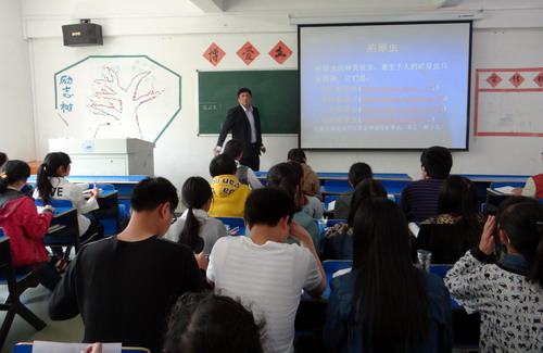 课堂上,汤自豪副教授用PPT的形式,生动地讲解了疟原虫是如何破坏肝细胞和红细胞,使人感染疟疾的过程。
