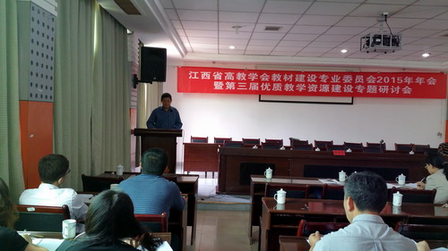 4月29日,江西省高教学会教材建设专业委员会2015年年会暨第三届优质教学资源建设专题研讨会我校濂溪宾馆二楼会议室召开。江西省各高校负责教材管理工作的教务处领导和教材科科长等80余人参加了本次会议。我校副校长陶春元出席大会并致辞。江西省教育厅高教处副处长罗红卫参加了会议。