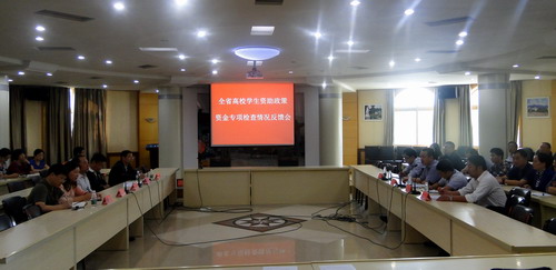 检查期间,检查组通过调阅档案、问卷调查、召开座谈会、调阅财务凭证等方式,对我校近几年来学生资助政策资金落实情况进行全面、细致的检查。检查组对我校近900名同学进行了随机问卷调查,抽查了6个学院2011-2014年国家资助相关的材料,召开了近600名励志奖学金学生代表参加的座谈会。