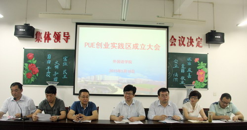会上,外国语学院教务科负责人宣读了“外国语学院PUE创业实践区实施方案”,学生代表、教师代表、企业代表先后发言,都对PUE创业实践区表示极大的激情,表示倍加珍惜此良机,达到“双赢”。