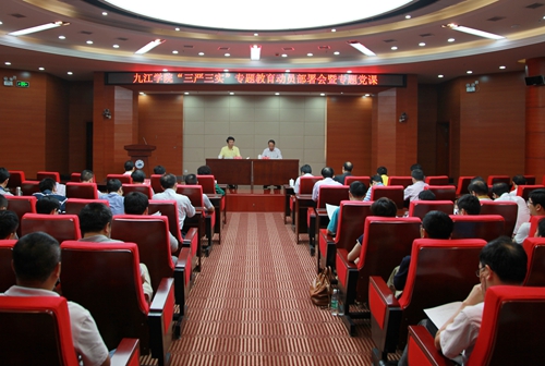 5月29日下午,根据中央及省委有关精神,我校召开“三严三实”专题教育动员部署会暨专题党课,正式启动“三严三实”专题教育工作。校党委书记郑翔作动员讲话并上首堂党课。校长甘筱青主持会议并传达全省高校党的建设工作会议精神。省委组织部干部四处副处长吴成涛专程前来指导本次会议。在家校领导,二级学院副处级及以上干部,机关部门、教辅单位正科级及以上干部参加了会议。