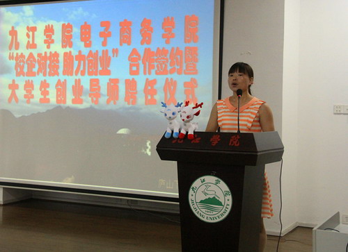 6月25日上午,电子商务学院举办“校企对接助力创业”合作签约暨大学生创业导师聘任仪式,王万山副校长出席仪式并讲话。学生处、校团委负责人,电子商务学院全体教职工及创业团队学生代表参加了仪式。此次仪式共邀请了首批16家企业单位参会,刘鹏飞、刘伯、唐正荣等15名校友和中国移动九江分公司副总经理付小明、九江万亮电子商务公司王玉亮等10名企业家受聘为电商学院大学生创业导师。仪式由电子商务学院党委书记丁文林主持。