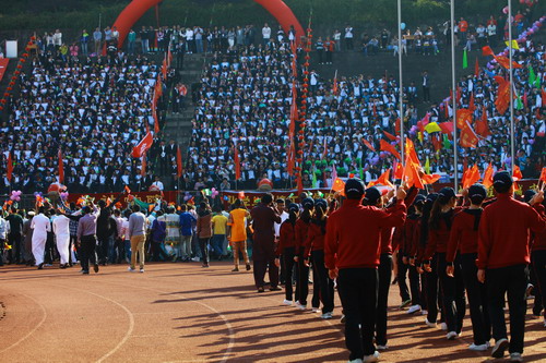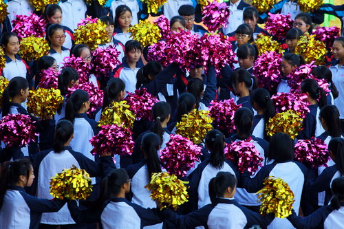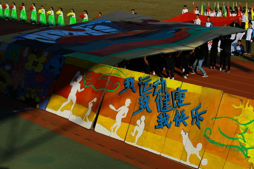 校长甘筱青致开幕词。甘校长指出,体育既是促进学校发展,实现培养目标的重要手段,也是学校加强精神文明建设,培养学生优良品质的重要举措。近年来,学校多次组队参加全省,全国乃至国际性的比赛,成绩喜人,为学校争取荣誉。举办运动会,是对我校体育工作,师生精神风貌和综合素质的大检阅。