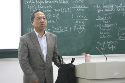 甘筱青校长在课后进行点评时赞赏了张玥老师的授课和课堂纪律,他指出,会计是一门理论和实践结合非常紧密和课程,同时就业和创业具有很好的广泛性和实用性,希望同学们掌握本领,真正“学习致用”;他希望我校的会计专业在今年的教育部本科综合评估中继续努力,名列前茅。