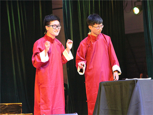 原创相声《创业进行时》,表演者们凭借自己独特的幽默感,用诙谐轻松的话语,讽刺了当前极少部分打着创业旗号在校园内乱贴小广告、摆地摊、替校外培训机构违规招揽生源等不良现象,告诫当代大学生们要拥有勇于战胜困难,意志坚强的创业精神,选择真正的创新创业项目,为学校的创业教育作出贡献、当好模范。