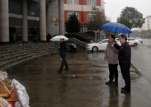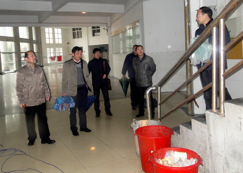 纪副校长一行又来到文友楼察看,在文友楼对面的濂溪大道上,由于路面不平,路面被积水淹没,影响师生出行和交通安全。纪副校长要求基建、国资等部门及时处理,消除安全隐患。在文友楼门前和文友楼一楼楼梯口,纪副校长发现有垃圾随意堆放,影响校容校貌,他要求后勤和教室管理部门加强管理,及时清理垃圾。在文友楼一、二楼之间的墙上,有一个楼栋电表箱,由于墙体渗水,电表箱里面的设备已经烧坏,文传学院多次向有关部门反映,但一直没有解决。对于这个安全隐患,纪副校长要求党办通知后勤、水电、国资、基建等部门协商,立即行动,尽快解决这一问题,消除安全隐患。纪副校长又来到理学院办公场所察看,理学院相关负责人反映,学院办公场所太过分散,不便于工作,希望办公场所能相对集中,以便于更好的工作。