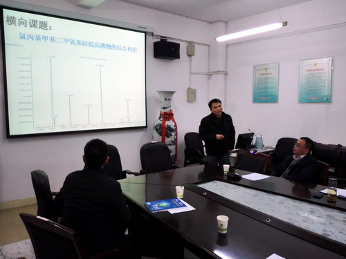 王建国教授和王常清博士代表精细化学品化学研究团队分别做题为“锂电池和动力电池材料碳酸乙烯酯精制的关键技术”和“钽铌冶金废水中氟与钾的回收”的报告;谭景林博士代表环境友好高分子与有机硅材料研究团队做题为“有机硅材料研究进展”的报告;叶志刚博士代表多酸化学与绿色催化研究团队做题为“氟硅表面活性剂的制备及性能研究”的报告;王天烽博士代表废弃物资源化利用研究团队做题为“含固率对污泥厌氧消化及脱水性能的影响”的报告;程鹏飞博士代表环境污染物处理及监测技术研究团队做题为“微藻生物膜贴壁培养及其处理环境废水的初步研究”的报告。汇报结束后,与会人员进行了学术交流,并讨论了中心的建设与发展。