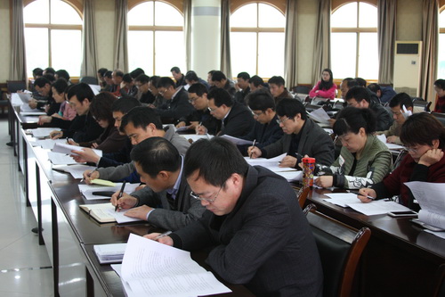 校招生与就业处肖国丰处长讲解说明了我校《迎接全省高校毕业生就业工作实施方案》和《就业工作评估指标体系、信息采集及任务分解表》。