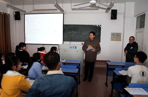 他首先对周老师的授课方式与教学效果给予肯定。他说,从有同学来“蹭课”,这一点说明周老师的课是能吸引人,受同学们欢迎的。随后,他对周老师的授课特点概括为两点:一是能够对课本知识进行提炼;二是能够对知识点进行扩展。他指出,知识点的扩充是需要平时积累。周老师在授课时能够即兴联想。联想是很重要的,在当下“大众创业,万众创新”中也是需要的。联想的前提是积累,从积累到联想,再从联想到创造。