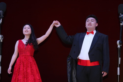 下午,校党委书记郑翔陪同吴雨先生一行在主校区大礼堂观看了艺术学院音乐舞蹈表演,并与全体演员合影。随后,吴雨先生一行在副校长杨焱林的陪同下参观了艺术学院新建工程。