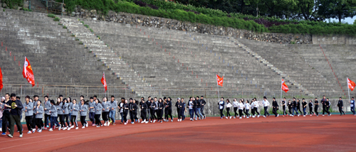 启动仪式结束后,在副校长王万山的领跑下,举行了“徒步长征第一步”:环校2.5公里跑步活动。