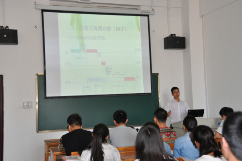 5月12日上午,校纪委书记魏立平来到厚德楼,与信息B1451班同学一起听取了信息学院尧时茂老师的《无线局域网技术》课程。信息学院院长邓安远、党委书记袁宜如一同听课。