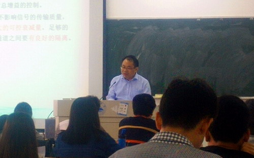 《通信电子线路》是通信工程专业的一门重要的专业课。江金龙老师在授课过程中内容熟练、条理清晰。纪副校长在课堂上聚精会神,认真地做着笔记。