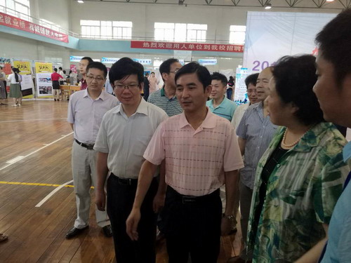 6月25日上午,我校在主校区体育训练馆隆重举行2016届毕业生夏季就业洽谈会。来自上海、广东、江苏、湖北、山东、安徽、广西、福建、江西等省的100家用人单位参加了本次就业洽谈会。
