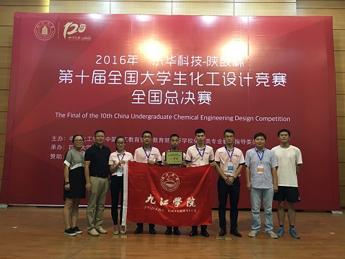 第十届全国大学生化工设计竞赛全国总决赛于8月19日至22日在四川大学举行,由我校化学与环境工程学院刘小风、刘祥丽、占昌朝、曹晓燕、刘芬等老师指导的,毛程铭、沈志民、赖佛阳、叶竞航、郝晓红组成的“浔梦”队设计作品——“年产三十万吨异丙苯清洁生产项目”获得全国一等奖,这是江西省参赛队伍首次获得全国一等奖;廖先鹏、姜雪霏、肖观秀、刘萍、赵康组成的“Horizon”队设计作品——“年产二十万吨丙烷一步氨氧化制备丙烯腈分厂”获得全国二等奖。