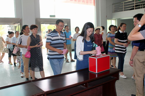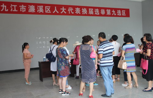 9月12日上午10点,濂溪区人大代表换届选举九江学院社区第九选区投票工作在教工活动中心一楼有序地展开。