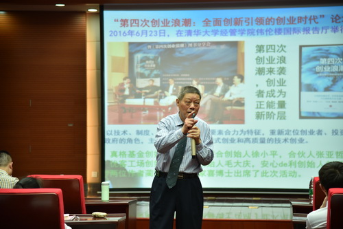 报告中,任教授深刻地分析了我国三次创业浪潮并带领在场师生初步认识了第四次创业浪潮。第四次创业浪潮——全面创新引领的创业时代,技术、制度、市场、资本四大要素合为特征,要重新定位创业者、投资者、政府的角色,主张颠覆性的商业模式创业和高质量的技术创业。任教授指出,大学生是中国梦实践者、创新奋斗者、时代引领者。在创业时,要感悟企业领导者做人干事创业之道;要有审时度势的战略眼光,技术革新的进取精神,经受挫折的坚强任性,抓住机遇的发展梦想;要感恩做人,敬业干事,不怕吃苦,敢闯市场,培育主人翁责任感和企业共同成长的团队精神。为强调感恩的重要性,任教授带领在场师生唱了一首《感恩的心》,在这小小的互动中,任教授和蔼可亲、幽默风趣的大师形象深入人心。