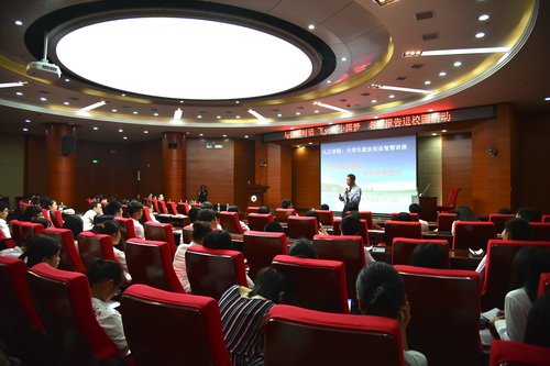 任教授最后告诉我们在大学要结交两个朋友——运动场和图书馆,并用四句勉励词——目标使命责任感,学习实践与时进,情商智商相匹配,生活工作比翼飞鼓励正在前行的在座大学生。