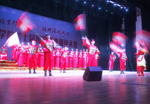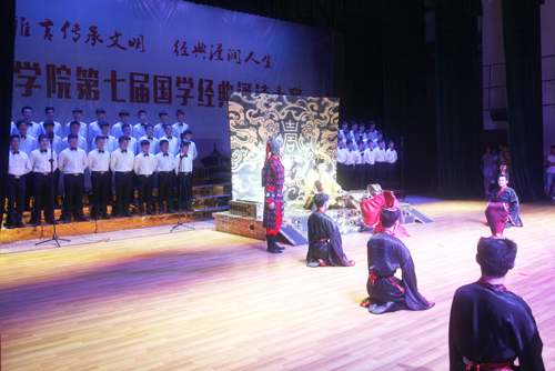 诗以言志,歌以壮行。在预赛中胜出的化环学院、文传学院、外国语学院等10支代表队,深情演绎了《春江花月夜》《红岩魂》《丝绸之路》等经典篇目。比赛中,选手们全身心投入,台上一边是同学们深情并茂的高声吟诵,一边是他们精心设计的舞蹈、歌唱、舞台剧,在声、光、电等现代技术的配合下,同学们用自己的方式诵国学、唱国学、演国学。同学们的精彩演出让大家感悟到了中华经典文化的魅力。比赛现场,来自柬埔寨的留学生们为大家奉献了《祈福舞》,他们的助演得到了大家的阵阵掌声。