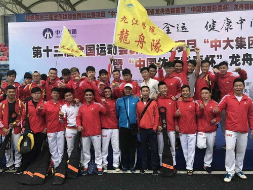 由国家体育总局社会体育指导中心、中国龙舟协会、中央电视台体育频道主办的 2017年中国龙舟公开赛于2017年5月5日在荆州市启动,此赛事与中华龙舟大赛是国内最高水平的龙舟赛。我校龙舟队参加了荆州和上海两站比赛,众多参赛队中既有顺德乐从、南海九江等国内顶尖职业队,也有北华大学、江汉大学、华中科技大学、上海海洋大学等传统的大学生劲旅。我校龙舟健儿在缺席八位主力的情况下(八名队员抽调到省队,备战天津全运会),不畏强敌、奋勇争先,取得了200米直道竞速第六名的好成绩,再次刷新了该项目的最快纪录。参加高水平的职业赛事,与最高水平的队伍同场竞技,教练员和队员们既能够接触到最科学、先进的技战术,又能很好的磨练队员的意志品质,使队员们在技术和心理上都有了很大的进步。我校龙舟队以优良的运动成绩、良好的精神风貌赢得了广大观众的掌声也受到多家媒体的采访,很好的宣传、推介了九江学院,一定程度上扩大了我校的影响力。