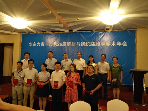 我校解剖教研室主任傅文学老师主持了闭幕式,大会评选出优秀论文一等奖、二等奖各三项并颁发了奖状,我院陈雄林、齐爱青两位老师分别获得一、二等奖。江西省解剖学会理事长与江苏省解剖学会理事长进行了交接仪式,并决定第27届华东六省一市解剖与组织胚胎学学术会议将于2018年在江苏无锡召开。