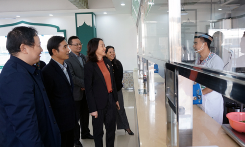 在校期间,廖奇志在党委副书记魏立平的陪同下,到校友创业事迹展厅和清真餐厅进行了实地考察。