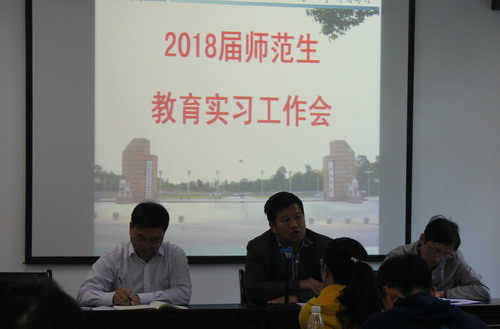 教务处师范教育科科长杨泽明介绍了2018届师范生教育实习总体安排情况,并就实习计划有关工作的要求及带队教师的工作职责进行了说明。