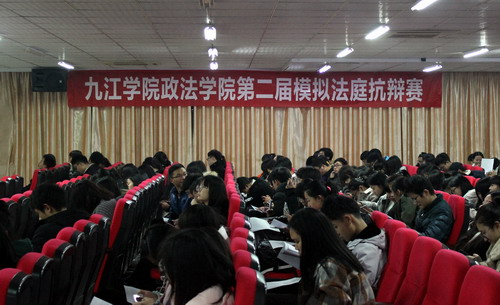 12月4日晚,抗辩赛决赛在八里湖校区综合楼模拟法庭开赛,副校长陈春生到场观摩指导。九江学院兼职教授、九江市人民检察院公诉处刘士豪处长,九江市中级人民法院刑事审判庭蔡报刚庭长、九江市濂溪区人民法院刑事审判庭彭宝池庭长、九江学院政法学院宛锦春副院长、九江学院政法学院刑法教研室副主任石浩旭博士等5位专家应邀担任本场比赛评委。政法学院院长詹建志、副院长曹钟安出席了本次活动。