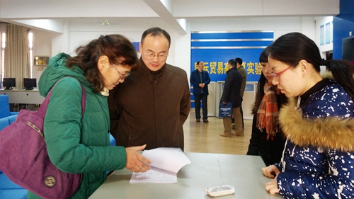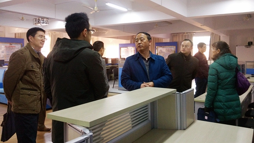 陈副校长和黄晓全教授亲自带队,会计学院张国伟副院长陪同,认真查看了学院实验室场地,在查看场地过程中陈副校长抽查了学生实习报告,机房上课登记记录本。黄教授指出学院要结合专业特点,机房和试验场地的介绍和布置工作可以进一步细化。