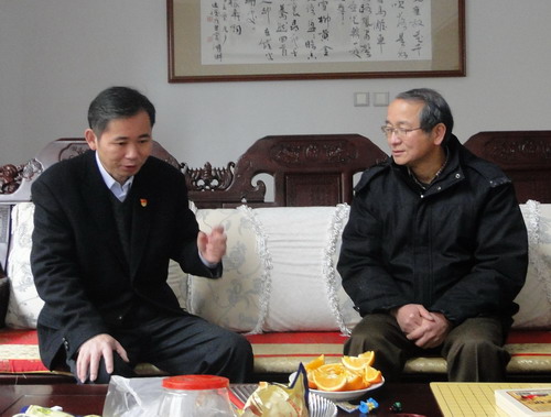 在2018年新春佳节即将来临之际,学校开展了新春走访慰问离退休老同志和困难教职工活动。校党委书记赵伟,校长刘晓东,校党委副书记魏立平,副校长纪岗昌、王万山、陈春生、杨耀防、夏启国、查振华在党院办、组织人事部、离退休职工管理处、宣传部、工会、浔东校区管理办公室、医学部有关人员的陪同下,走访了全校离休干部、副厅级以上干部、原四校区校级领导及部分特难党员、困难教职工,为他们送去新春祝福,带去节日问候。