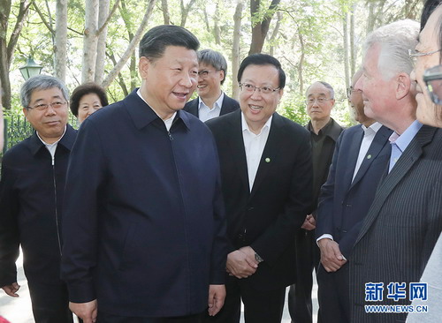 5月2日,中共中央总书记、国家主席、中央军委主席习近平来到北京大学考察。这是习近平在北京大学临湖轩北侧的小庭院看望部分资深教授和中青年教师代表,并同他们亲切交谈。新华社发(盛佳鹏摄)