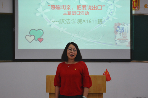 高翔书记对本次活动进行了总结。他充分肯定了本次主题团日活动的意义:一是分享,通过大家发言,同学们分享了对母爱的感悟和大学学习生活中成长的喜悦,从而让同学们更深刻地理解在自己人生道路上母爱的伟大;二是传承,同学们分享母爱与感恩的同时,也是不断地传承中华民族优秀文化传统。A1611班是个优秀班级,同学们要在践行社会主义核心价值观和即将开展的“红色家书颂读”活动中充分展示政法学子应有的风采。