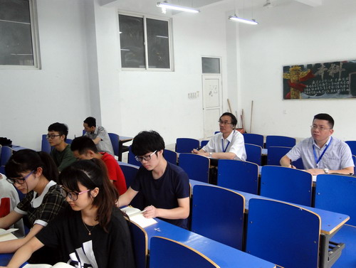6月12日上午10:15—11:00,本科教学工作审核评估预评估专家组组长、华中师范大学原副校长李向农教授来到文友楼105教室,听取了徐波老师为文传学院2017级汉语言文学专业学生讲授的《〈庄子〉精读》课程。课后,李向农教授与徐老师进行了简单交流,并查阅了上课教材。