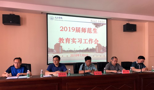 教务处师范教育科科长杨泽明介绍了2019届师范生教育实习总体安排情况,教务处副处长张伏龙对教育实习带队教师的工作职责进行了说明。实验中心主任方向明就教育实习的工作要求进行了说明,并布置了赣县支教和音体美专业师范生支教的下一步工作。