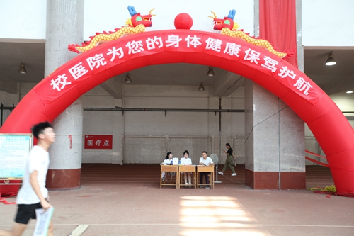 田径馆门外热闹非凡,场馆内更是人声鼎沸。早已做好充分准备的校迎新现场各部门和各二级学院的老师与同学热情地接待了每一位经历了舟车劳顿的新生们。