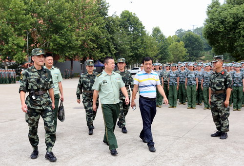 武警九江支队首长到校检查军训教官施训工作