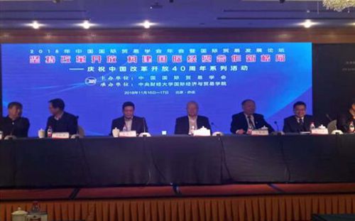 11月16日-17日,第九届中国国际贸易学会年会暨国际贸易发展论坛在商务部中国国际电子商务中心隆重召开。本届年会由中国国际贸易学会主办,中央财经大学国际经济与贸易学院承办。年会主题是“坚持改革开放构建国际经贸合作新格局—中国改革开放40周年系列活动”。我校副校长王万山教授和经济与管理学院周业付博士、曹滨副教授参加了本次年会。本届论坛分为主论坛学术交流与分论坛学术交流。经管学院的两位老师和参会的学者进行了深入的交流,并认真聆听了主论坛与分论坛的学者的发言与讨论,感觉受益匪浅。