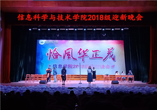 恰同学少年,风华正茂。11月27日晚,信息学院在大礼堂举行了2018级“恰风华正茂”的主题迎新晚会。副校长王万山、学生处处长刘平、校团委书记闫来英,信息学院院长邓安远、党委书记袁宜如、副院长邓长寿,团委学生科老师及2018级全体师生观看此次表演。