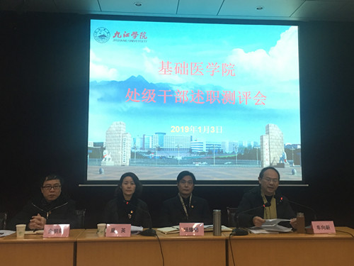 在听取了基础医学院党政工作汇报及三位处级干部的述职后,杨耀防副校长对基础医学院一年来的工作给予了充分肯定,他表示,基础医学院党政工作的成绩主要体现在“四有” “五是”, “四有”即:党建工作有规范;“三会一课”有落实;党建促教研有进展;“六个一”特色工程有成效。“五是”即:一是党政班子配合默契;二是日常工作扎实推进;三是各项管理工作井然有序;四是教学科研齐头并举;五是人才队伍统筹推进。杨副校长在肯定成绩的同时,也对基础医学院全体教职工提出新的希望,一是希望大家继续大力支持学院和学校发展;二是希望大家继续加强各方面的工作创新,为2019年学院建设再创佳绩。最后,杨副校长给大家送上了新年的祝福。
