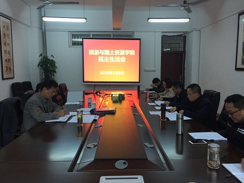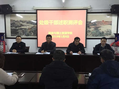 1月8日上午,旅游与国土资源学院在竞知楼512会议室召开2018年度处级干部述职测评会和党委民主生活会。校党委副书记、校长刘晓东同志在校党委委员党办主任刘遵海、校办倪玉平同志的陪同下出席会议并讲话。学院领导班子和全体教职工参加了会议。