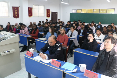 黄晓明副处长从“欢迎、提醒、祝愿”三方面发表讲话,他希望留学生们遵守中国法律,注意人身安全,规范生活,专注学习。万邱姝介绍了出入境管理和留学生居留许可申请流程及有关法律法规,国际交流学院教务科科长甘霖、学生科副科长黄安平分别就教学管理和学生管理工作进行了介绍。