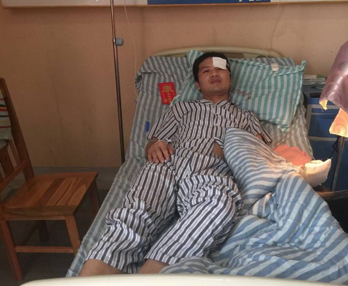 3月20日早上7时许,徐东华校友所在象湖派出所接到报警,市场上有一男子将肉摊上的刀抢走,在市汽车站对面不时挥舞,严重威胁人民群众生命安全。徐东华接警后,立即和同事赶往现场,与凶手进行搏斗,有效、及时地制服了凶手的犯罪行为,保证了人民群众的生命安全。但是,徐东华在搏斗过程中,被凶手砍断左手大拇指,左手掌大部也被砍断、肌腱断裂,额头、脚等多处被砍伤。徐东华的班主任徐常龙得知此事后,立即向药生学院党政领导汇报,学院领导高度重视,安排余副院长与班主任徐常龙代表学院去赣州看望住院治疗的徐东华,带去母校师生的关怀和慰问,希望他安心养病、早日康复。