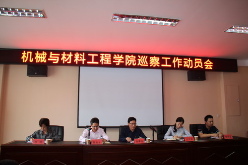 根据学校党委的统一安排和部署,5月16日下午,校党委第一巡察组到机械与材料工程学院召开巡察工作动员会。校工会主席兼组织人事部副部长、巡察组组长金葆金,校团委副书记、巡察组副组长任丹阳,校纪委监察审计室监察科科长、巡察组成员黄国强,校财务处会计科会计、巡察组成员张玲出席会议。金葆金作动员讲话。会议由机械与材料工程学院党委书记陈胜才主持,学院全体教职工参加了动员会。
