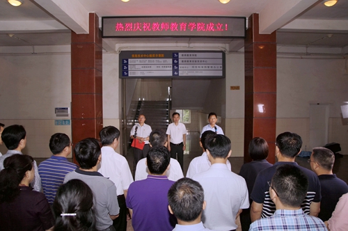 6月13日上午,我校举行教师教育学院成立暨揭牌仪式。校党委书记赵伟、校长刘晓东出席仪式并为教师教育学院揭牌。副校长、教师教育学院院长陈小林主持揭牌仪式。学校相关职能部门、二级学院负责同志及教师教育学院部分师生代表参加了活动。