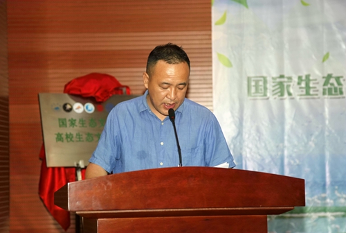 江西省生态文明办专职副主任刘兵在开幕式上讲话。他代表江西省发改委、省生态文明办,对本次大会的顺利召开表示热烈的祝贺!他指出,由九江学院江西长江经济带研究院发起,联合国家生态文明试验区四省十所高校相关学科机构,共同成立国家生态文明试验区高校生态文明研究联盟,构建面向生态文明建设研究的开放性科研交流平台,具有十分重要意义。要进一步提升生态文明研究的协同创新能力,探讨长江经济带绿色发展过程中面临的现实问题,完善生态文明制度体系发展路径,充分发挥高校科技与人才优势非常必要。