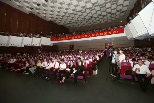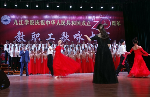 歌声嘹亮诉深情,热血沸腾迎国庆。9月29日晚的九江学院大礼堂,灯火辉煌、歌声嘹亮,“不忘初心、牢记使命”——九江学院庆祝新中国成立70周年教职工歌咏大赛”在此隆重举行。校党委书记赵伟,校长刘晓东,校党委副书记魏立平,副校长纪岗昌、王万山、陈春生、杨耀防、夏启国、查振华,校纪委书记李广欣,副校长陈小林,校党委委员王殿元、冯健、刘遵海出席。来自二级学院、机关部门的26个代表队、1000多名教职工,欢聚一堂,放歌新中国,礼赞70年。