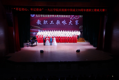 “不忘初心、牢记使命”——庆祝新中国成立70周年教职工歌咏大赛由中共九江学院委员会、九江学院主办,学校党委宣传部和工会具体承办,旨在引导广大教职工更加紧密地团结在以习近平同志为核心的党中央周围,当好主力军,建功新时代;激发广大教职工的爱国热情,团结动员广大教职工不忘初心,牢记使命,立足岗位,为实现建设特色鲜明区域领先的综合性应用型大学办学目标而努力奋斗。